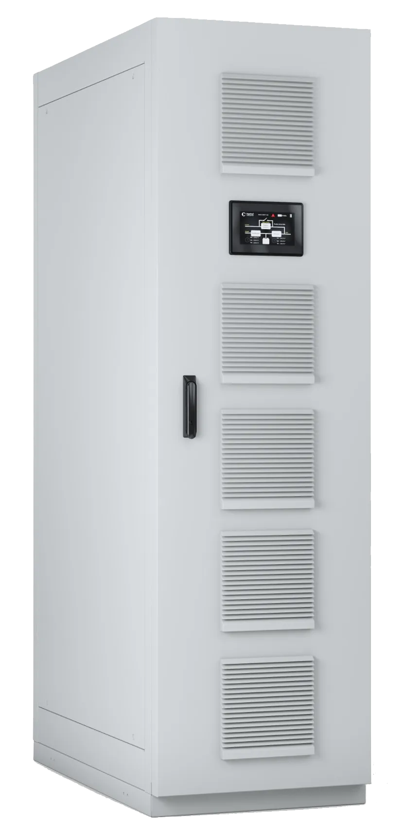 Equipado con disyuntores para entrada, salida y bypass; Botón EPO (apagado de emergencia) y salida de contacto seco para señalización de alarma remota.